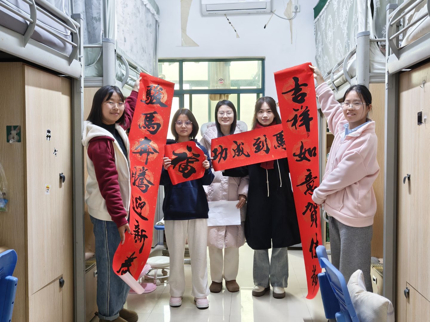 为弘扬中华优秀传统文化、营造温馨宿舍氛围,为广大学子送去新年慰问,近日,伟德国际bevictor组织师生走进员工寝室,开展 “墨香暖寝 福伴医路”送春联、台历及便利贴活动,将新春祝福与实用好物送到同学们身边。