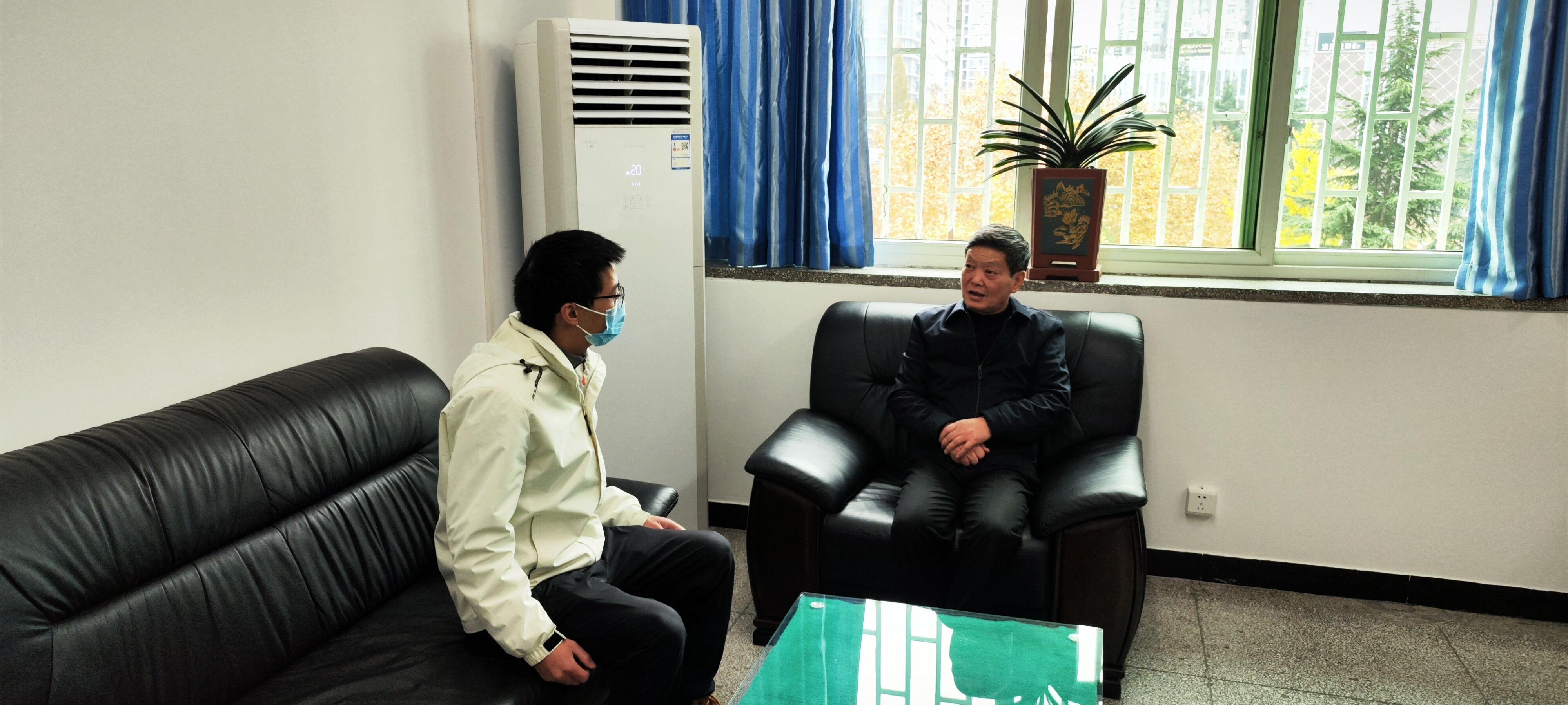 12月1日上午,公司党委委员、附属医公司党委书记唐自力与所联系2020级1班员工刘强同学进行座谈交流,公司党委副书记叶栋恒、员工第一党支部副书记韦锋共同参加交流座谈。
