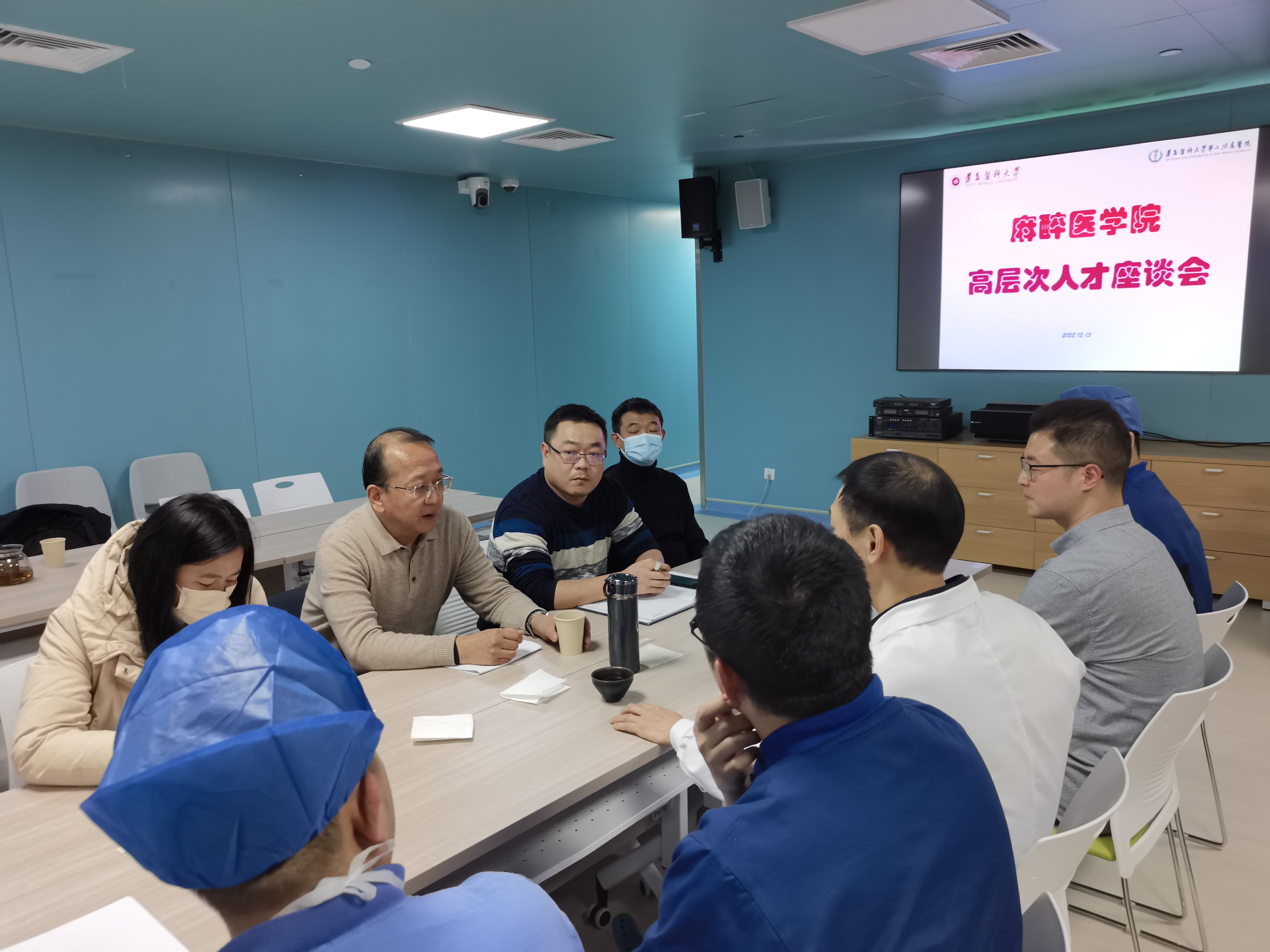 为扎实推进伟德国际bevictor人才工作,12月13日下午,伟德国际bevictor经理刘兴奎、党委副书记叶栋恒、党委委员张宇等一行7人走访了第二附属医院麻醉科,开展高层次人才走访座谈活动。会议由叶栋恒副书记主持。第二附属医院麻醉科主任王钊教授、副主任张益博士及麻醉科其他人员参加了活动。